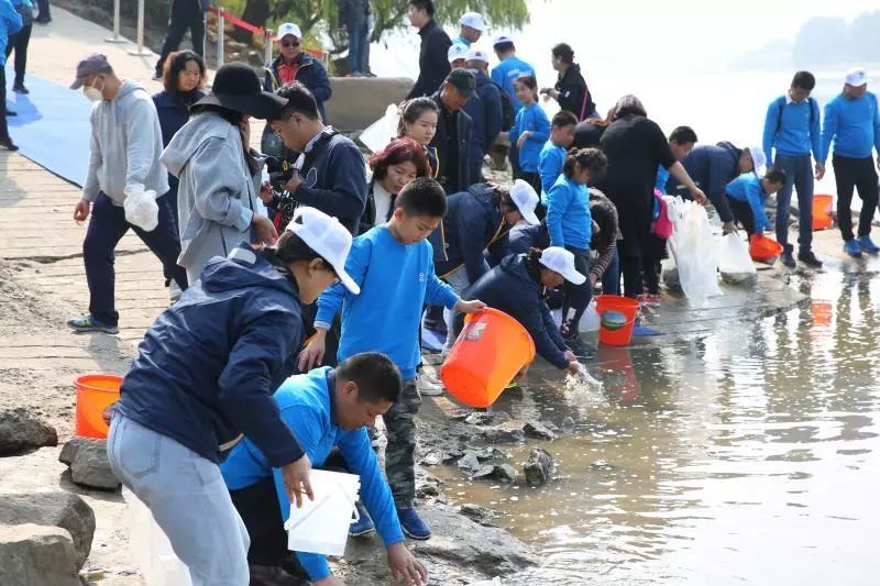 集團公司陳亮董事長做了簡單致辭后,現(xiàn)場大手牽小手,共同將近5萬尾魚苗放歸長江。